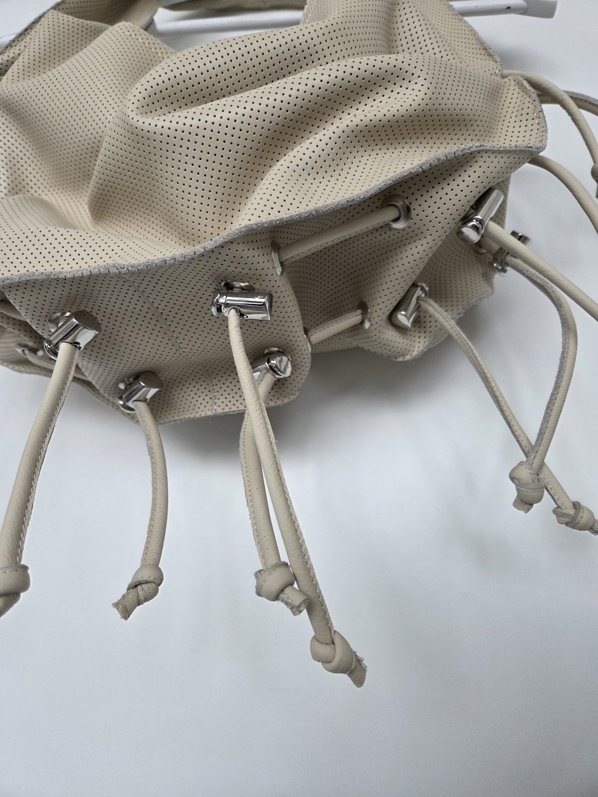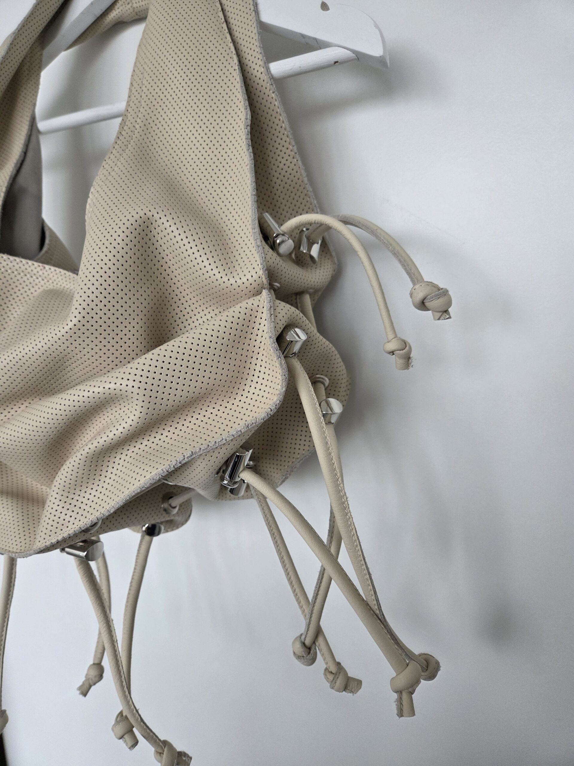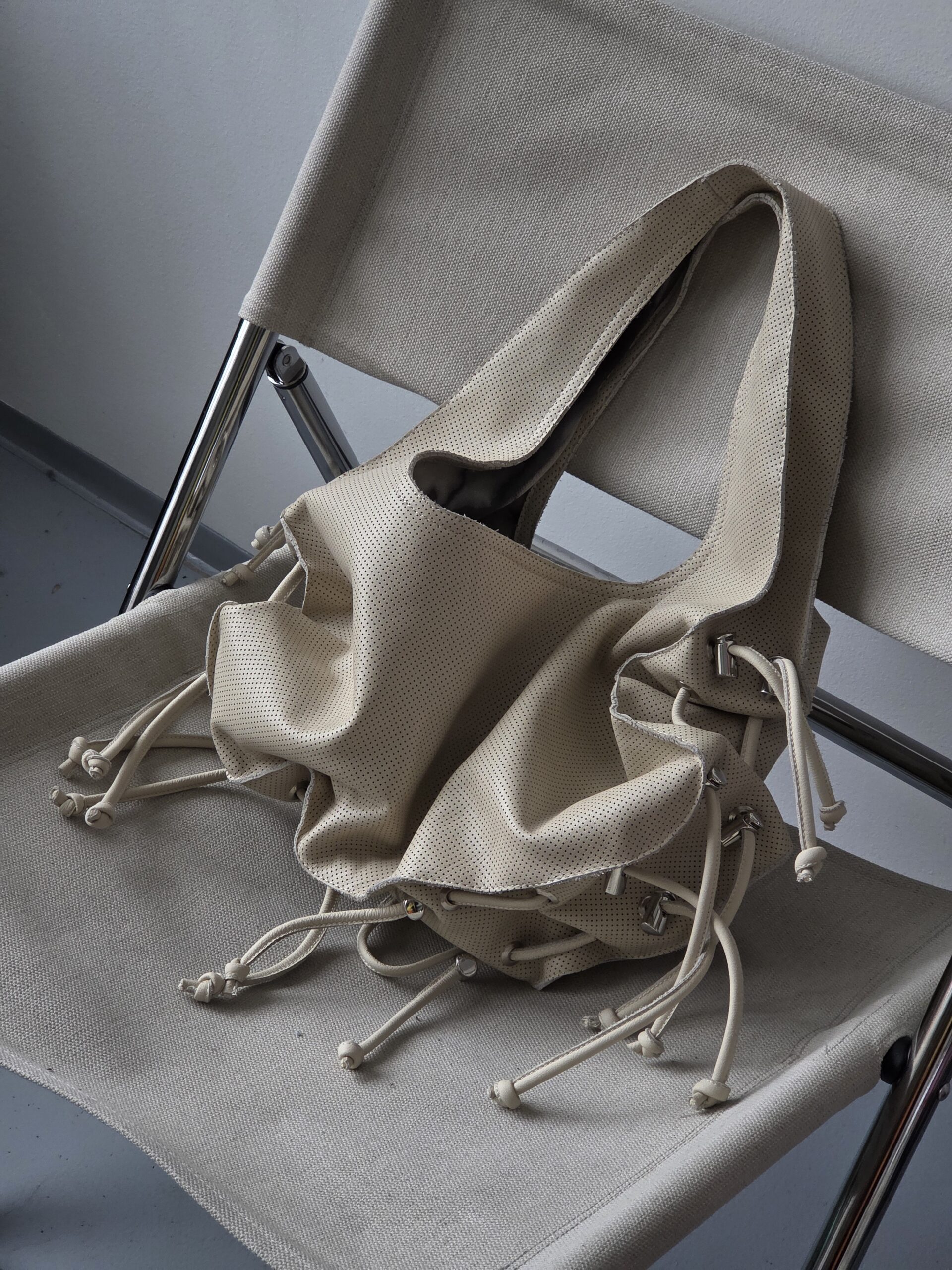 Leather bag inspired by seaweed washed ashore and left to dry under the sun — curling, shrinking, and crackling softly underfoot.The bag carries this same tactile memory of the seaside: textured, sun-dried, and quietly sculptural.