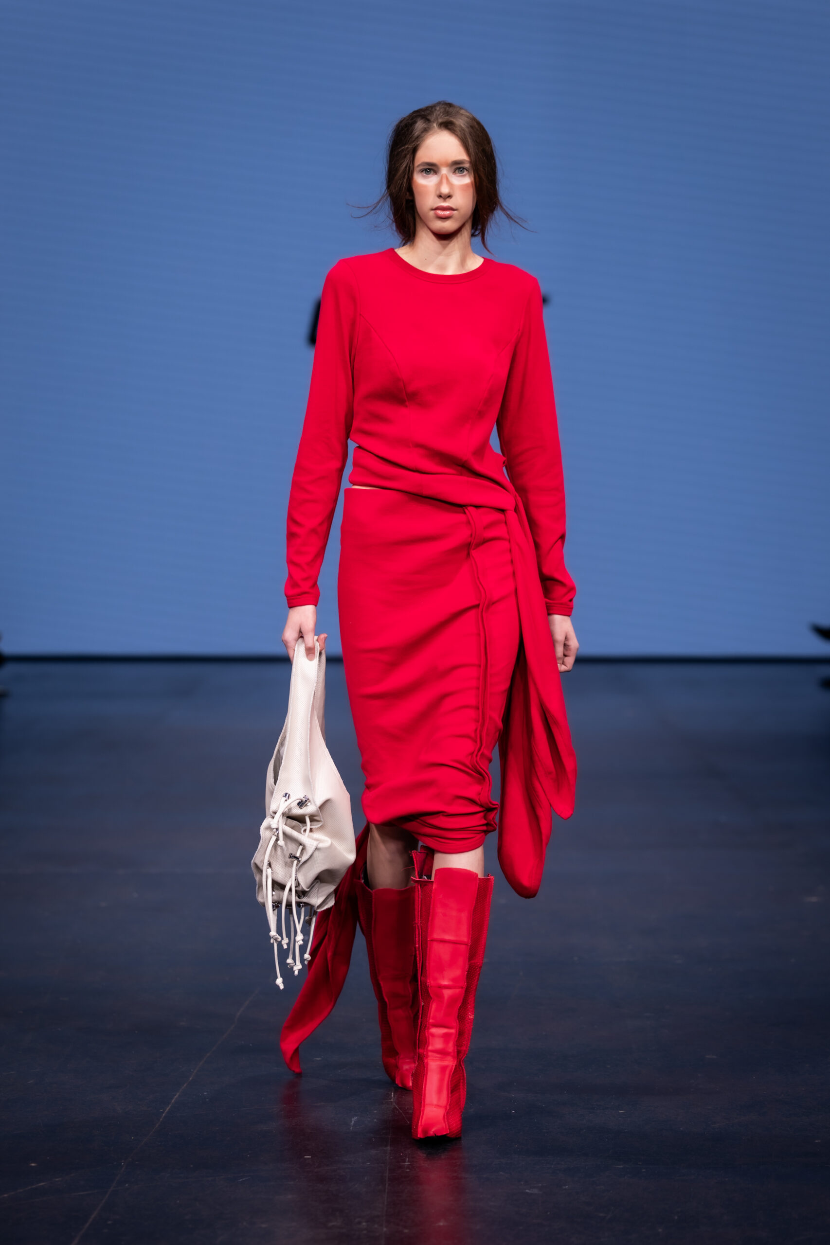 A one-of-a-kind piece — made from shoe industry leftover leather.